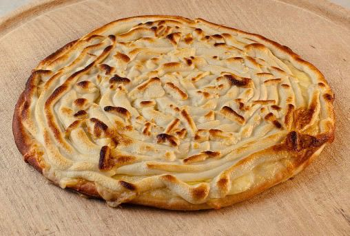 Massa sem glúten. Creme de leite zero lactose, de queijo muzzarella zero lactose e brigadeiro branco zero lactose . Tamanho broto - 20cm.