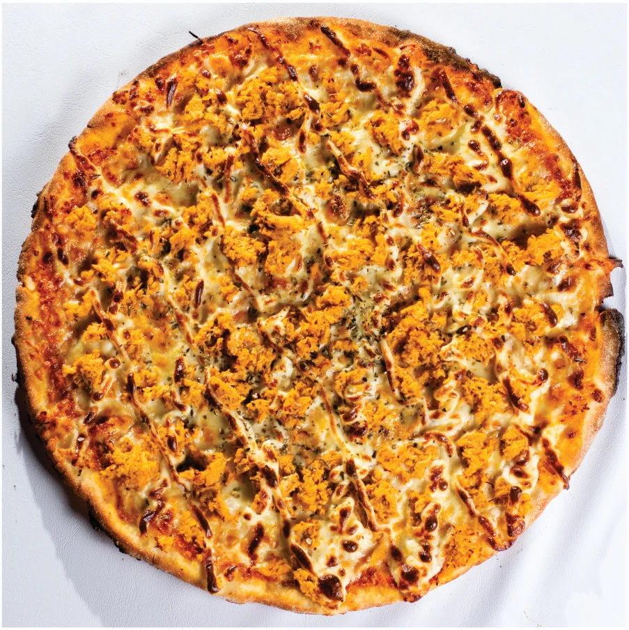 Massa sem glúten. Molho de tomate pelati, queijo muzzarella zero lactose, frango, catupiry zero lactose e orégano. Tamanho G - 8 fatias - 35cm.